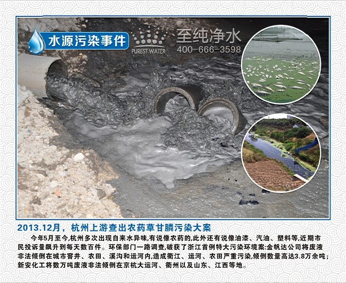 第二幅:2013.12月,杭州上游查出草甘膦污染大案