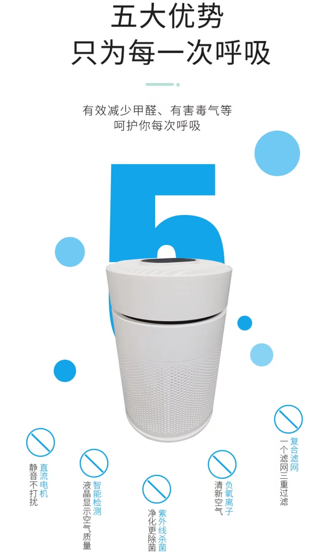 尤其是有寶寶的家庭或者鼻炎患者,更應該安排一個桌面空氣凈化器有的凈化器比較大,特別占地方它集紫外線消毒,殺菌,除甲醛為一體體積小顏值高,還有高清觸控led屏空氣狀態也可以通過指示燈顯示,麻雀雖小五臟俱全!